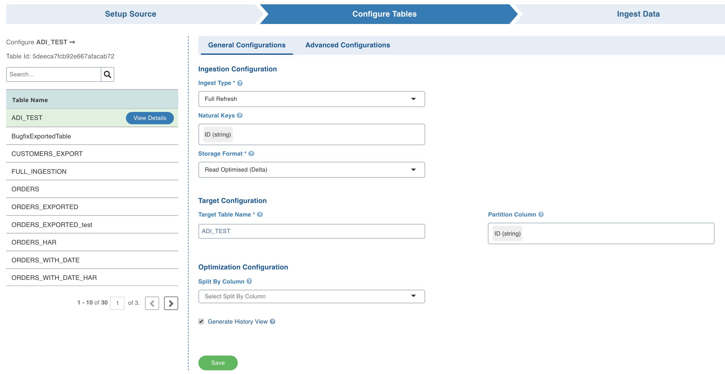 Storage Format | The format in which the tables must be stored. The options include Read Optimised (Parquet),Read Optimised (ORC), and Write Optimised (Avro). |
