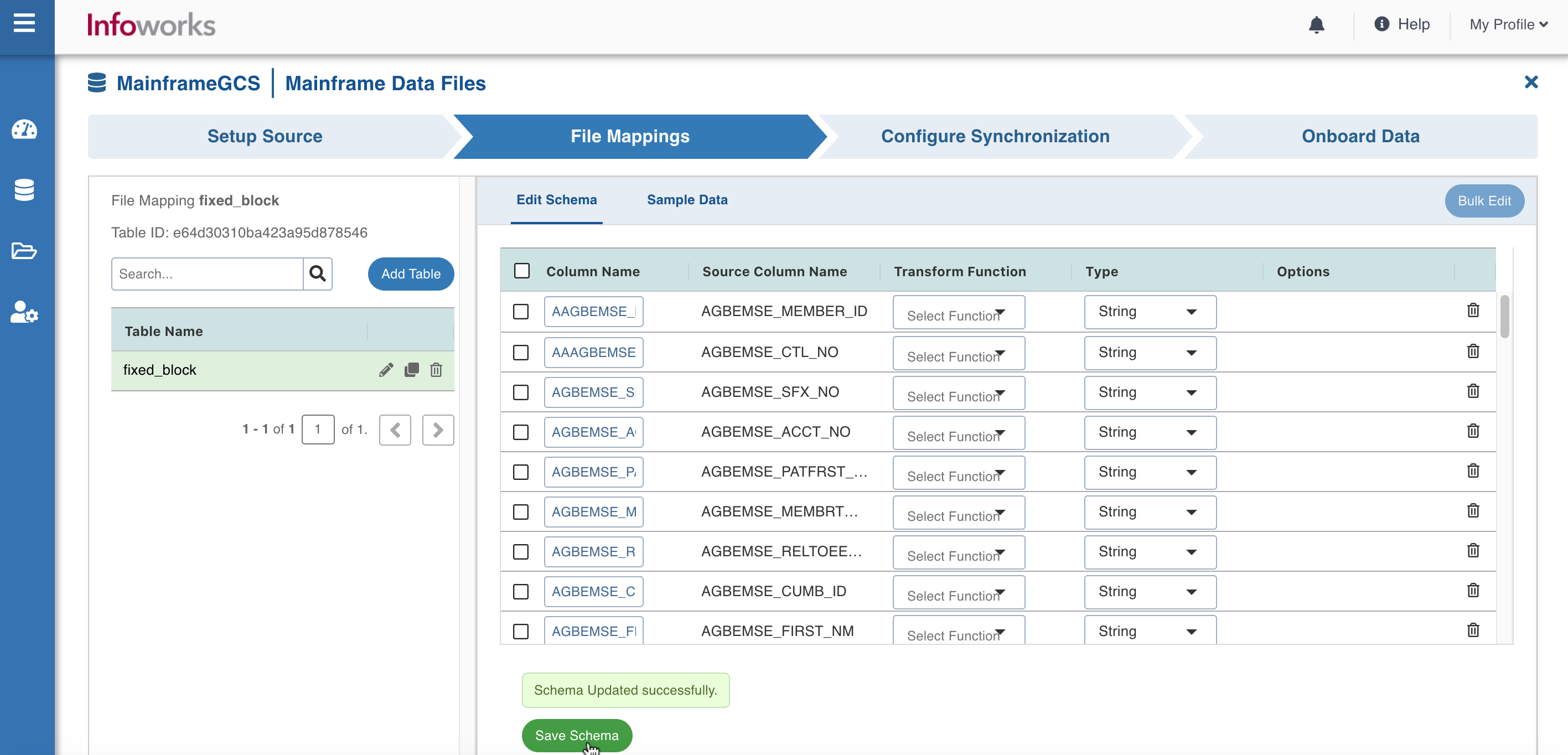 1. Click Save Schema to save the schema successfully.