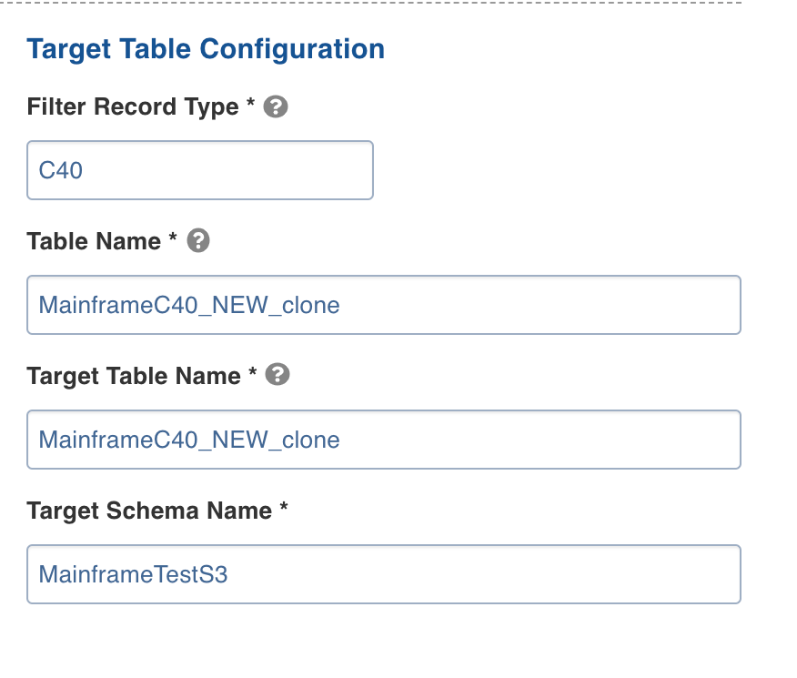 1. Enter the following details in the Target Table Configuration section: