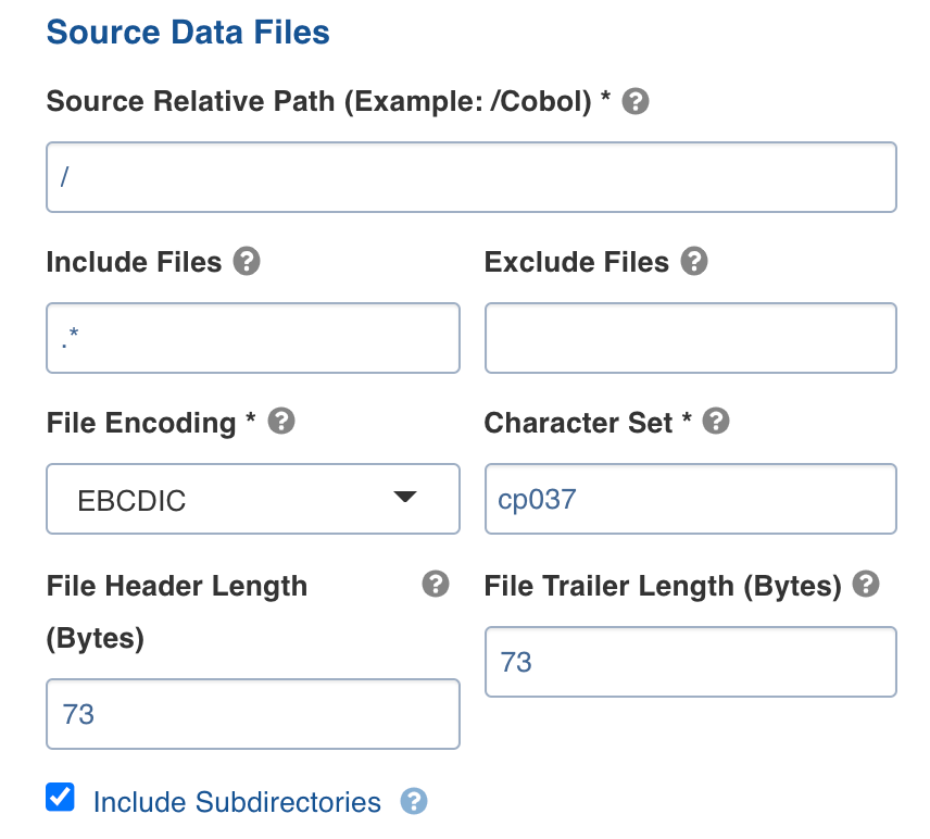 Source Relative PathThe path to the directory where the data files are stored (relative to the source base path). (For example, /Cobol)