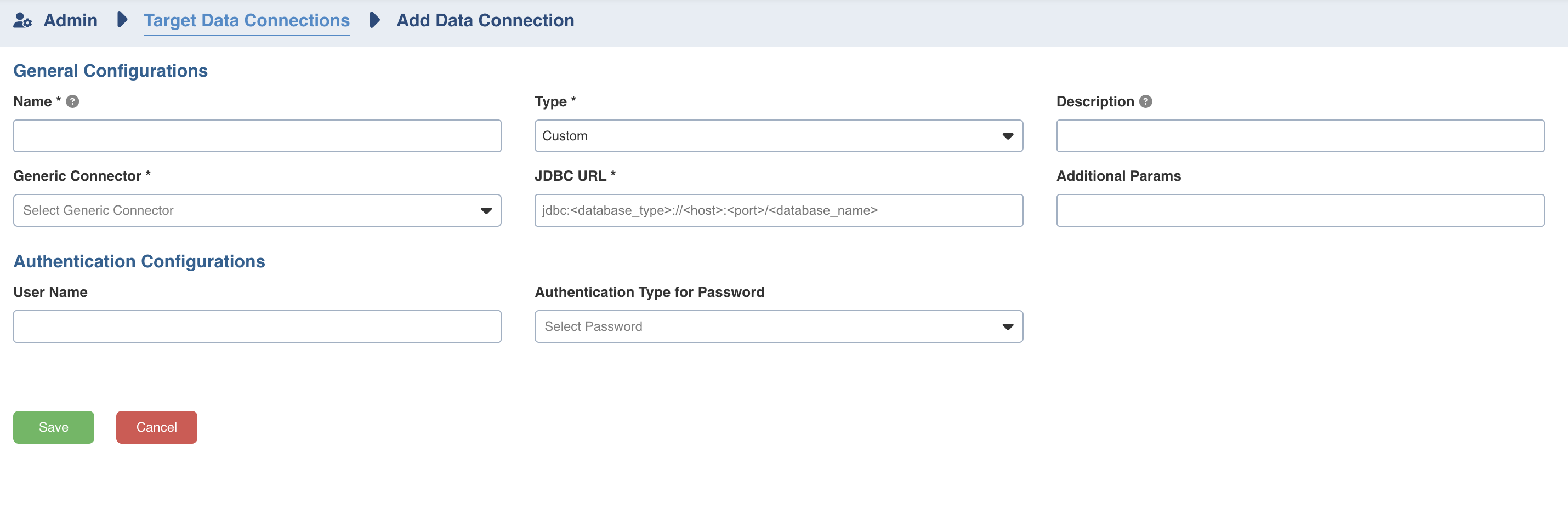 Refer to the connector-specific details below for configuration in the JDBC URL, Additional Parameters, and Authentication sections.